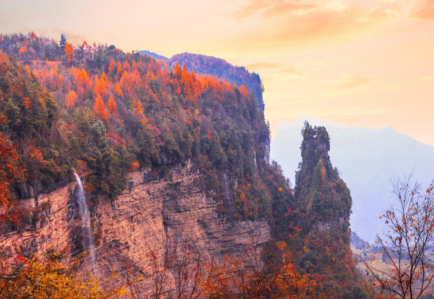旺苍地处中国南北自然分界线——秦岭大巴山一线,4万余亩原始彩林在此连片成海,水青冈、银杏、枫树等数百种树种交织生长。随着季节更迭,漫山遍野渐次晕染,绘就一幅绚丽的秋日油画。每逢深秋,米仓山大峡谷便成为色彩的海洋,旺苍红叶彩林与巴中光雾山、汉中黎坪国家森林公园连片成带,共同构成秦巴山区规模最大红叶彩林带,宛如一幅壮丽画卷徐徐展开。